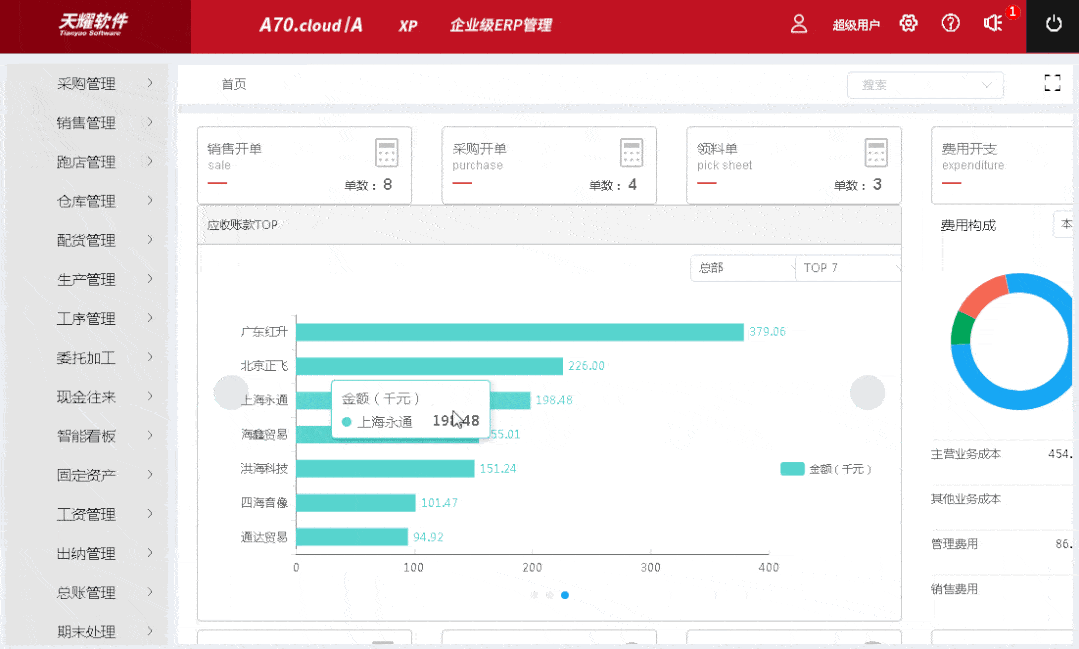 ▶天耀A50.cloud/B ERP管理系统--智能看板编辑然而在实际实施过程中,大多数ERP系统实施成功率并不高,其中较为主要的原因是背离了项目管理的原理以及方法。