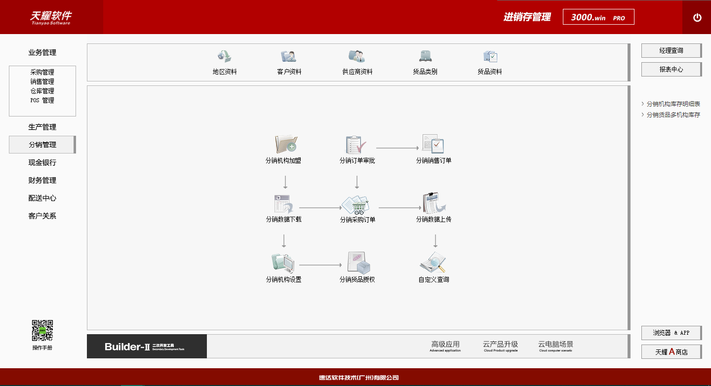 《经典软件》支持局域网 / 互联网多用户应用,实现异地多机构、多店面、多仓库等 远程应用,支持 APP 移动端应用,数据实时同步,汇总、穿透、大大提升了应用效率和安 全性。系统内嵌的 Builder-II 二次研发工具,满足用户的个性化需求。